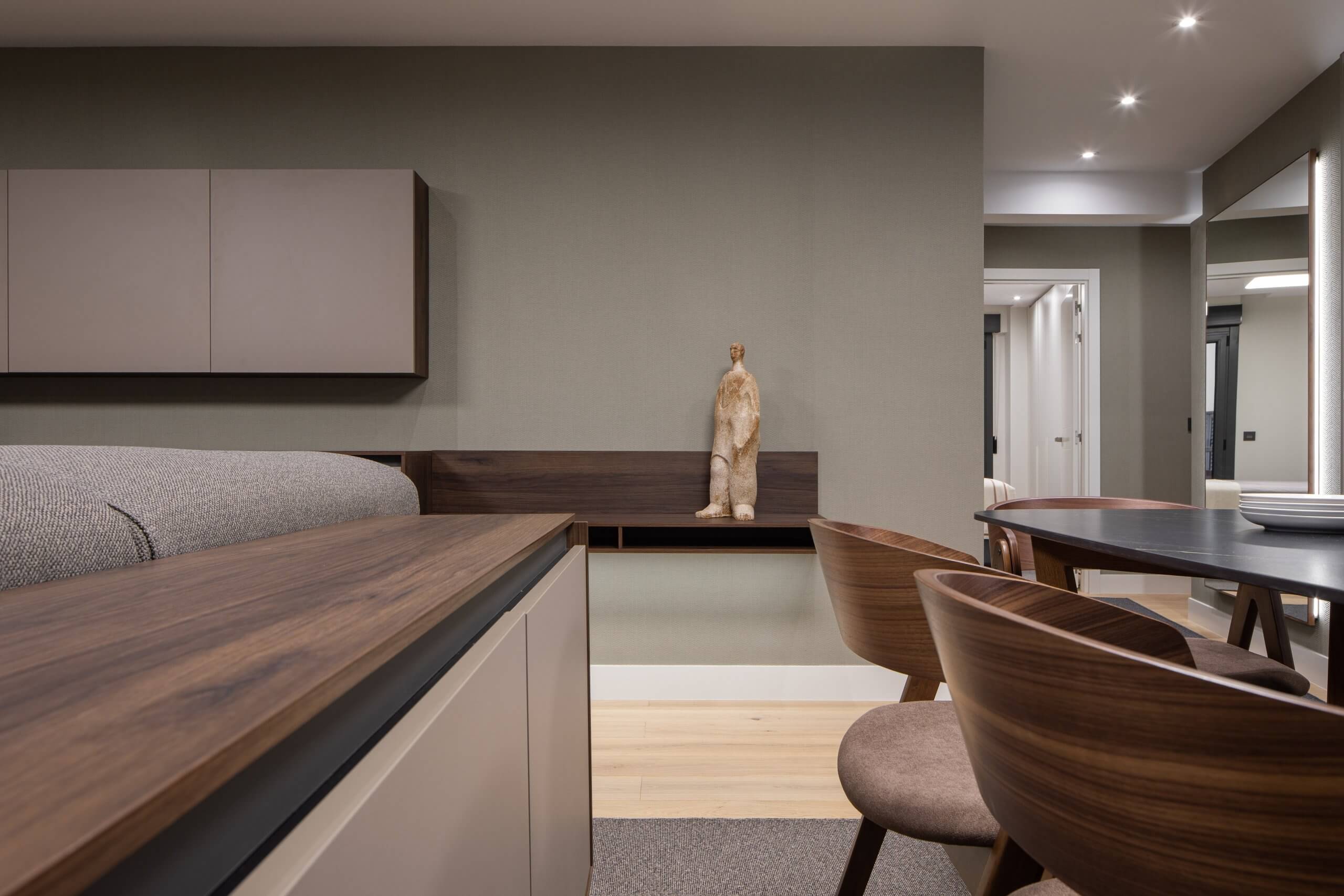 La distribución fluida entre zonas comunes y privadas favorece la comodidad del día a día, sin perder el sentido de refugio y recogimiento que define esta vivienda. Una reforma pensada para quienes valoran el diseño sobrio, elegante y funcional, con un estilo atemporal que resiste modas y tendencias.